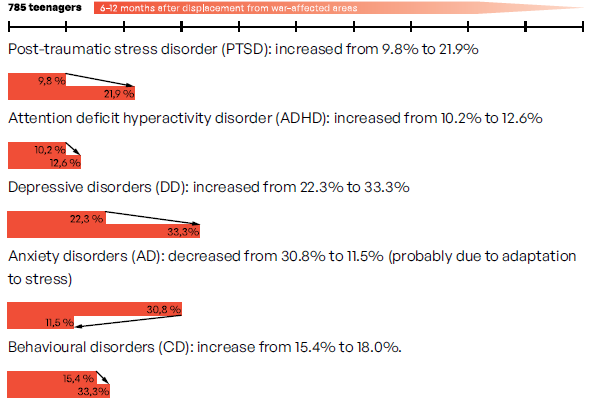 21,9 %adolescents who were displaced as a result of the war and who suffer from PTSD (sample of 785 persons)