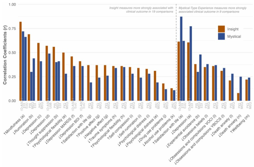 Comparing the relationship and impact of insights and mystical experiences on clinical indicators (Kugel et al., 2025).