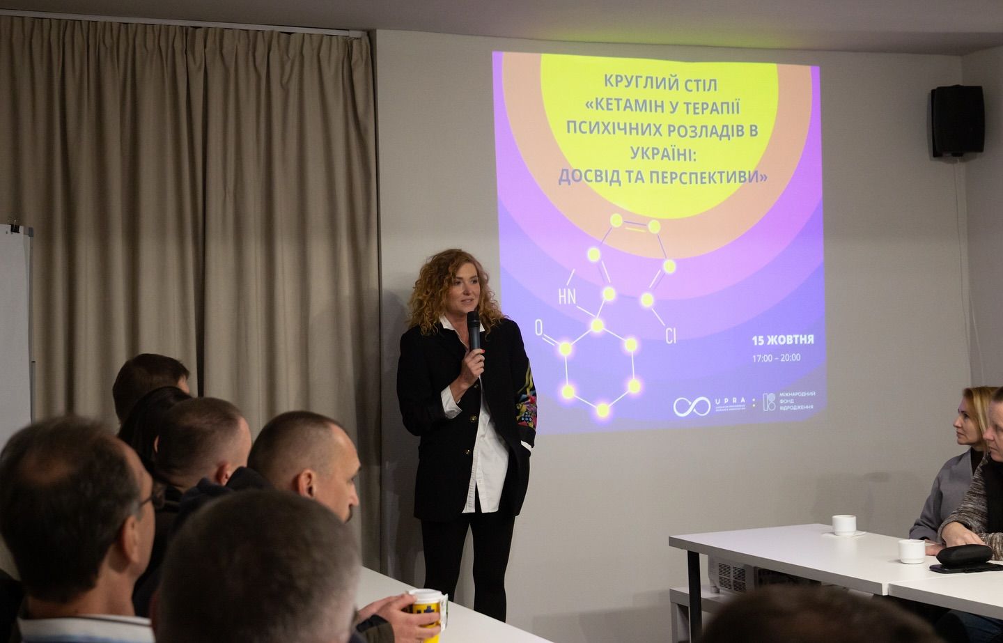 Найбільшим заходом став круглий стіл «Кетамін у терапії психічних розладів в Україні: досвід та перспективи», який об’єднав представників клінічної практики, дослідників та експертів для обговорення безпечного та стандартизованого використання кетаміну в лікуванні резистентної депресії. Під час проведення круглого столу представниця Центру громадського здоров’я МОЗ України І. Іванчук ініціювала обговорення оновлення національної настанови з лікування депресії та можливості включення кетамін-асистованої терапії як методу лікування резистентної депресії поряд із транскраніальною магнітною стимуляцією (ТМС) та електросудомною терапією (ЕСТ). Реалізація цієї пропозиції потенційно дозволить забезпечити ширший доступ пацієнтів до доказових інноваційних методів лікування.